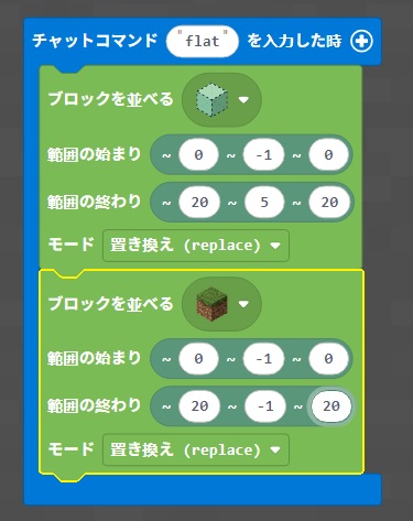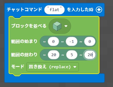 「チャットコマンド」で “flat” と入力したらスタートするようにする。