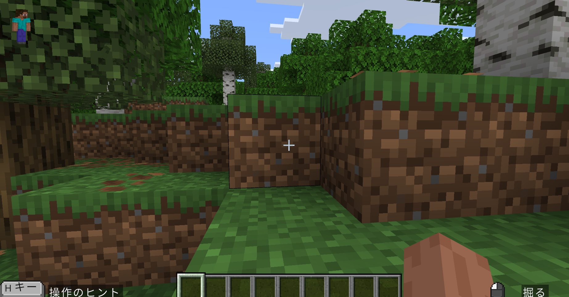 削ったあとに地面を「草ブロック」に置き換えてきれいにする。