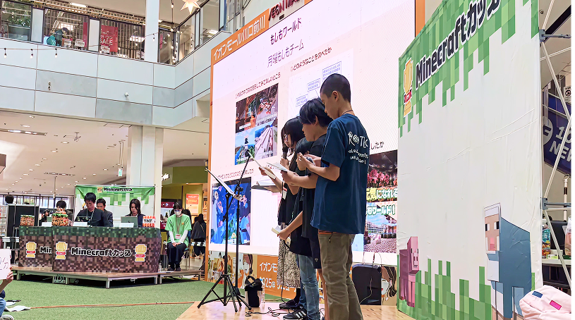 予選通過後、イオンモール川口前川にて作品発表を行いました。多くの来場者の前で、自分たちが作り上げた世界を堂々とプレゼンテーションする姿は、日頃の学習の成果が表れた瞬間でした。